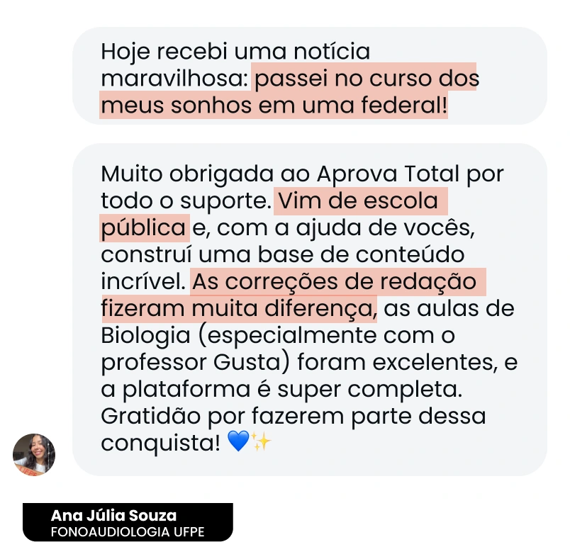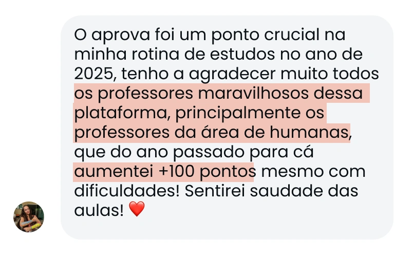 Você não precisa de mais um cursinho. Você precisa de um sistema de aprovação. O Sistema Aprova organiza o ENEM em 4 frentes: plano guiado pelo que cai, revisão inteligente, treino no estilo da prova e uma tutora 24h pra sua nota evoluir muito mais rápido.